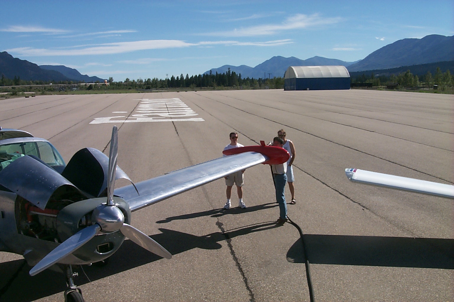 Mike, Dale and Tim doing 'something' related to preflighting for the hop across the border, and back into the states.